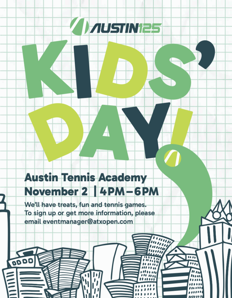 Get ready for non-stop tennis thrills! Tournament partners DropShot, Racquet Lifestyle, USTA Texas and Youth Impact Sponsor, Dell Children’s, are serving up an action-packed Kids Day experience designed for young players aged 5 – 12 years old.